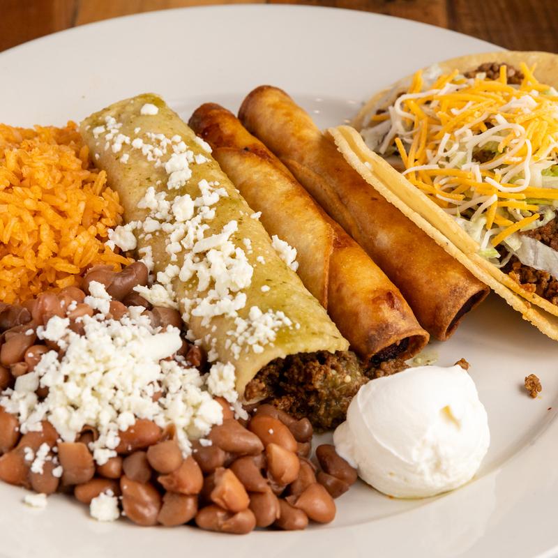 Four crunchy taquitos filled with chicken and cheese, topped with sour cream, guacamole, cheese, lettuce, pico de gallo, and hot or mild salsa | Add additional taquito $1.75