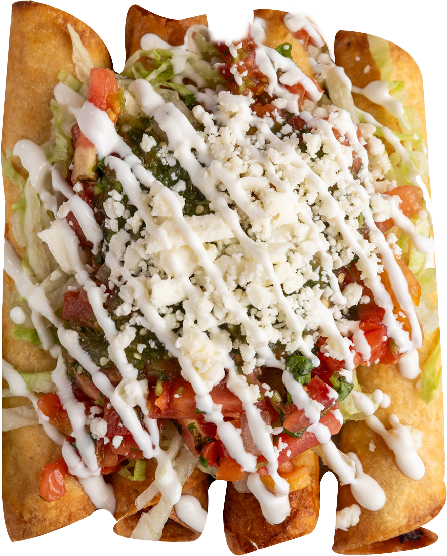 Four crunchy taquitos filled with chicken and cheese, topped with sour cream, guacamole, cheese, lettuce, pico de gallo, and hot or mild salsa | Add additional taquito $1.75